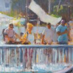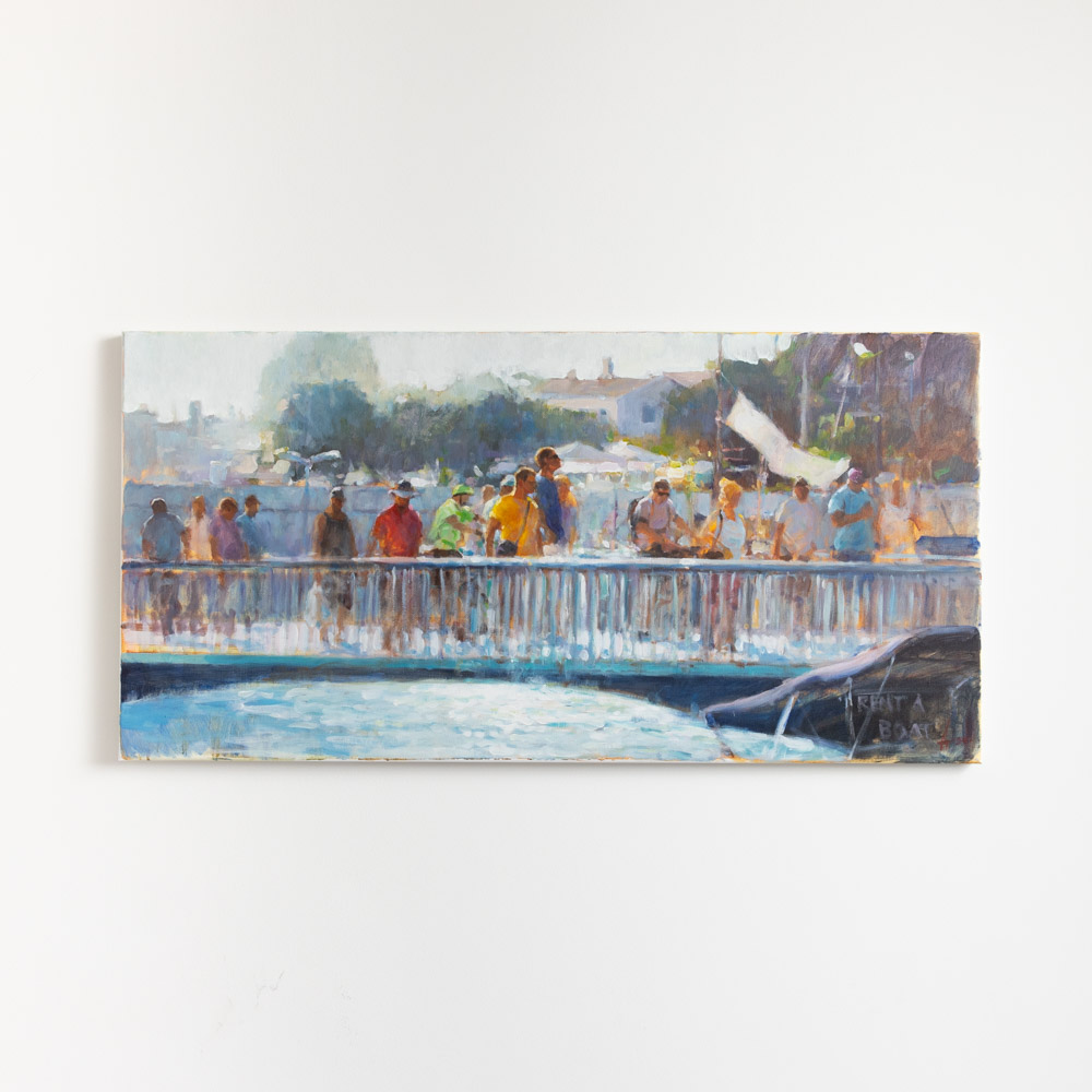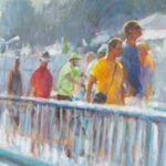 Zadarski slikar mlađe srednje generacije svoju je stilistiku za izražavanje svijeta našao u tradicionalnom modernističkom slikarstvu, onome koje u svjetlu i boji uobličava realitet izgleda svijeta. Motiv mu je most i ljudi na mostu, a prije svega atmosfera u ambijentu. Sunčeva se svjetlost odražava o površinu mirnoga mora, stvarajući impresionistički vizualni efekt. Kompozicija je jednostavna i simetrična: jasna horizontala mosta, a iznad i ispod priroda, dolje more, gore pogled odlazi u daljinu na horizont dubokog pejzaža. Slikar vlada planovima i perspektivom.